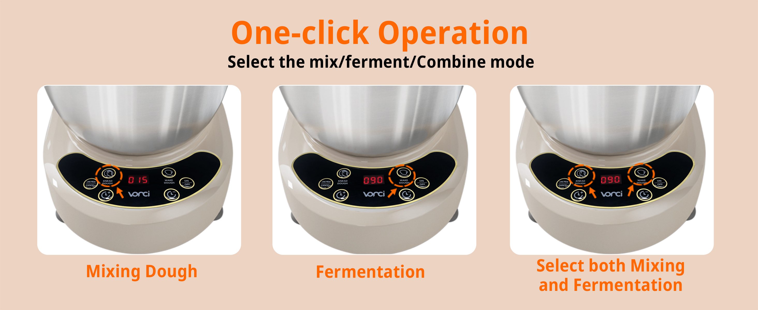 The bread mixer machine uses a constant temperature fermentation design, maintaining the fermentation temperature between 77-100°F, providing the ideal proofing temperature for the dough and maintaining the ideal environment for yeast growth, allowing the dough to ferment fully and evenly.