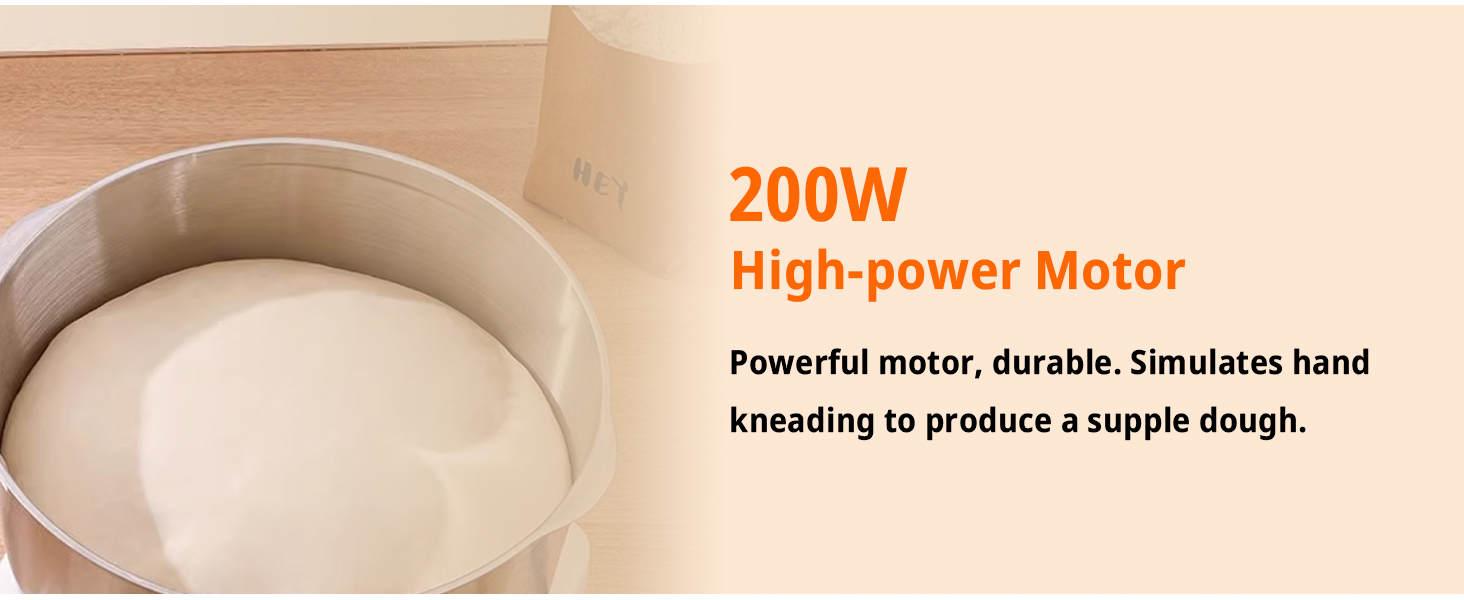 The spiral dough-kneading structure, combined with a 200W high-power motor, simulates manual kneading to produce a more elastic dough. One-button operation saves you time and effort.