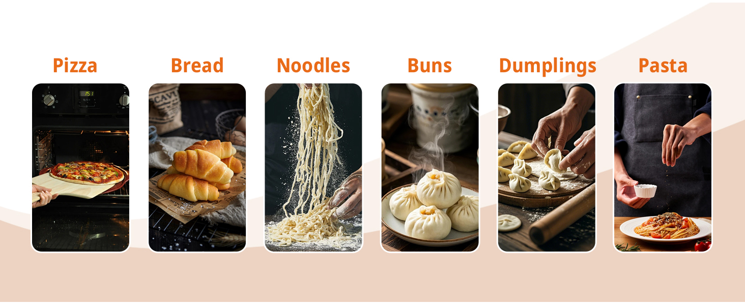 The kitchen dough mixer is equipped with a 7.3qt (7L) stainless steel mixing bowl that can handle up to 2000g of flour—suitable for making large amounts of dough for family gatherings or everyday baking.Ideal for bread, pizza, pasta, sourdough, scones, dumplings, and steamed buns.