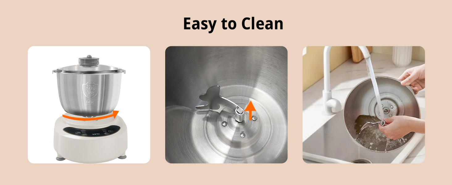 The dough maker is made of durable 304 stainless steel bowl and stainless steel kneading blades, ensuring long-lasting performance. The detachable design allows you to remove the stainless steel bowl and blades for easy cleaning.
